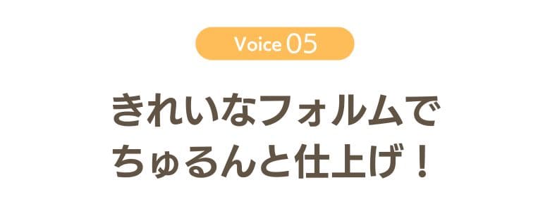 もともと薄爪で凹凸感もあり、爪にコンプレックスがありましたが、きれいなフォルムでちゅるんと仕上げていただき、自分の手を見るとルンルンな気分になります。