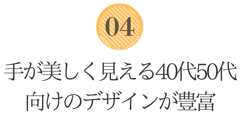 当サロンでは、40代や50代の大人女性に寄り添った、上質なネイルデザインを数多くご用意しています。