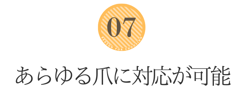 対応例:短い深爪・縦筋が際立っている加齢爪・凹凸が激しい爪・噛み爪・むしり爪・巻き爪・アトピー・ジェルネイルアレルギーの方など